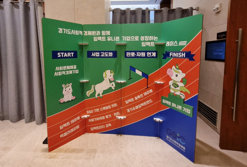 병풍처럼 연결 설치하는 허니콤보드 연결 배너는